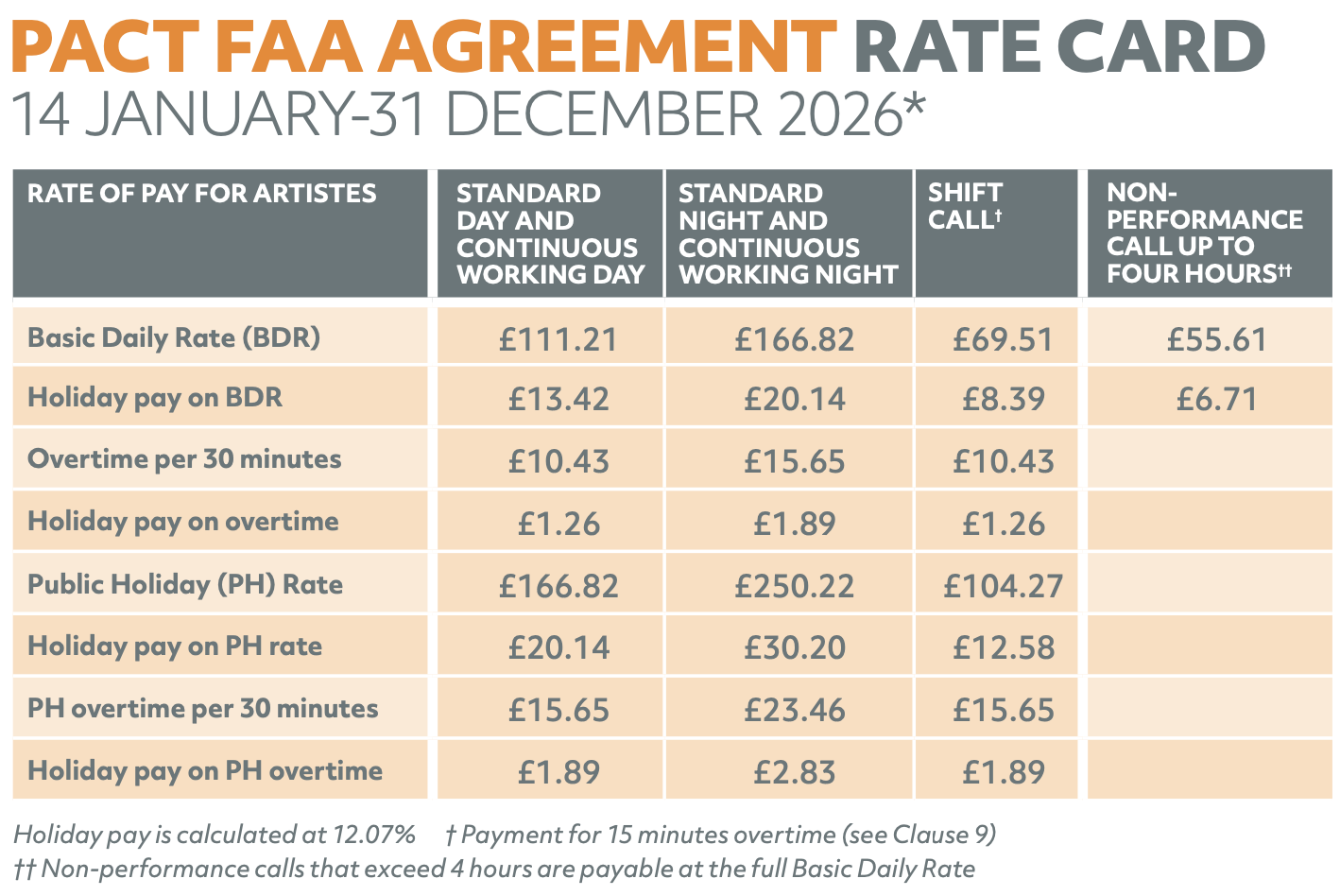 PLEASE SEE BELOW PACT FAA RATE for productions on FAA terms that finalise their budgets on or after 14th January 2026.